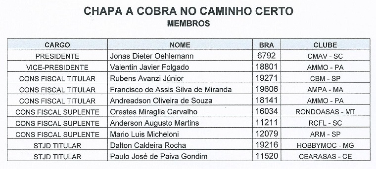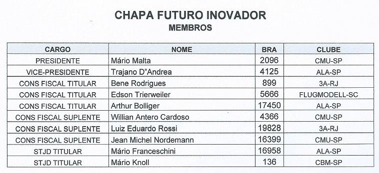 CHAPAS QUE CONCORRERÃO AS ELEIÇÕES DIA 07/05/2019