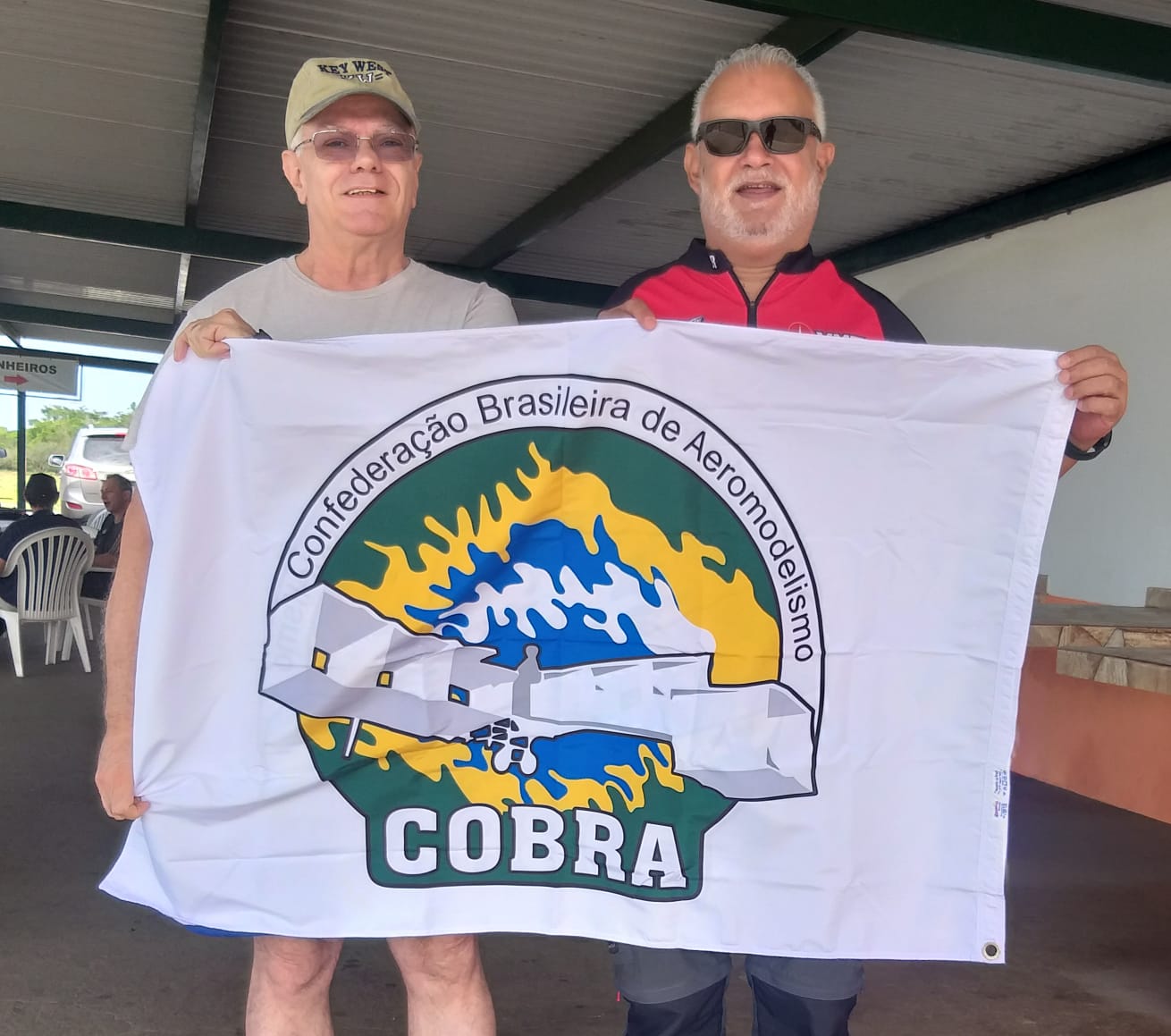 Rogério Araujo, Diretor Técnico da COBRA, entrega a Renato Barbosa, Presidente da ABRA-DF  a bandeira da Confederação.