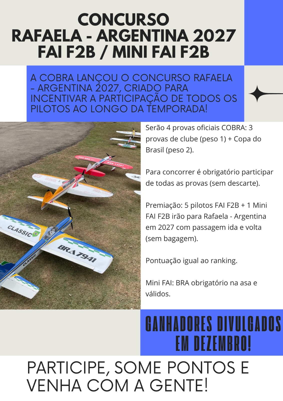 Divulgação Concurso Rafaela Argentina 2027 (FAI F2B e Mini FAI F2B)